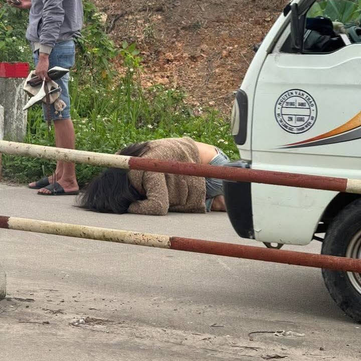 Theo nội dung clip được chia sẻ, cô gái không đi dép, mặc quần bò xanh, áo khoác màu nâu, bên trong mặc áo trắng, trong tình trạng trang phục xộc xệch nằm bên lề đường. Trên mặt và áo cô gái xuất hiện nhiều vệt máu.
