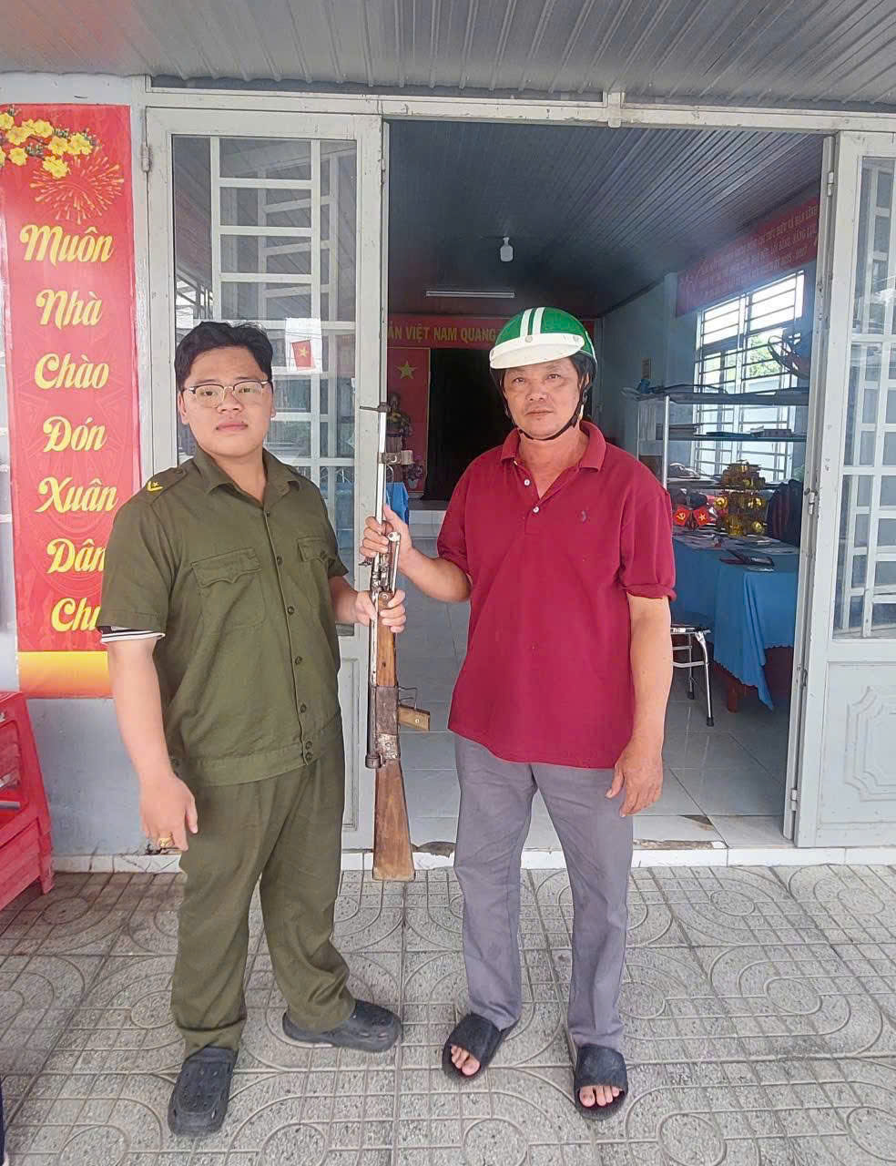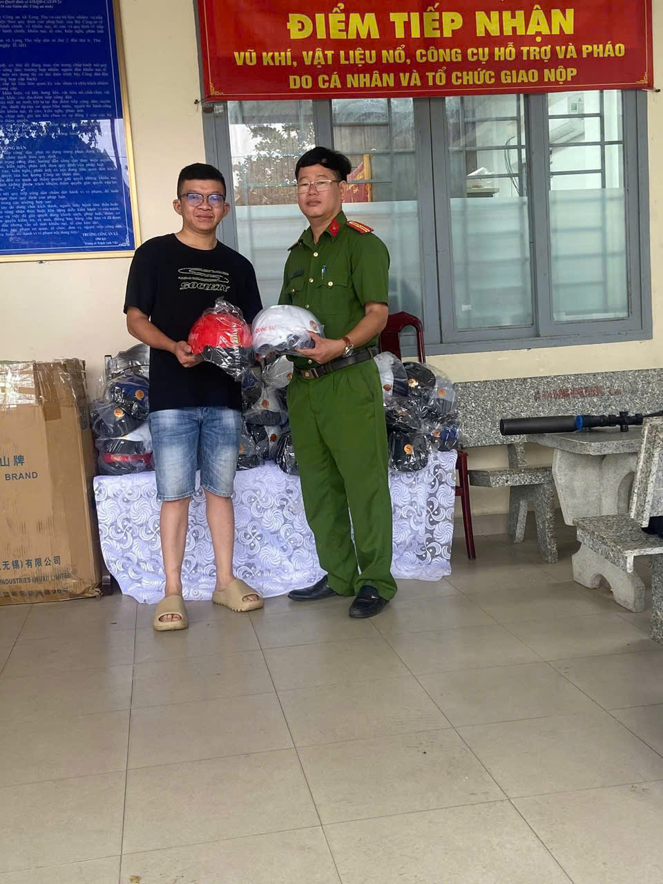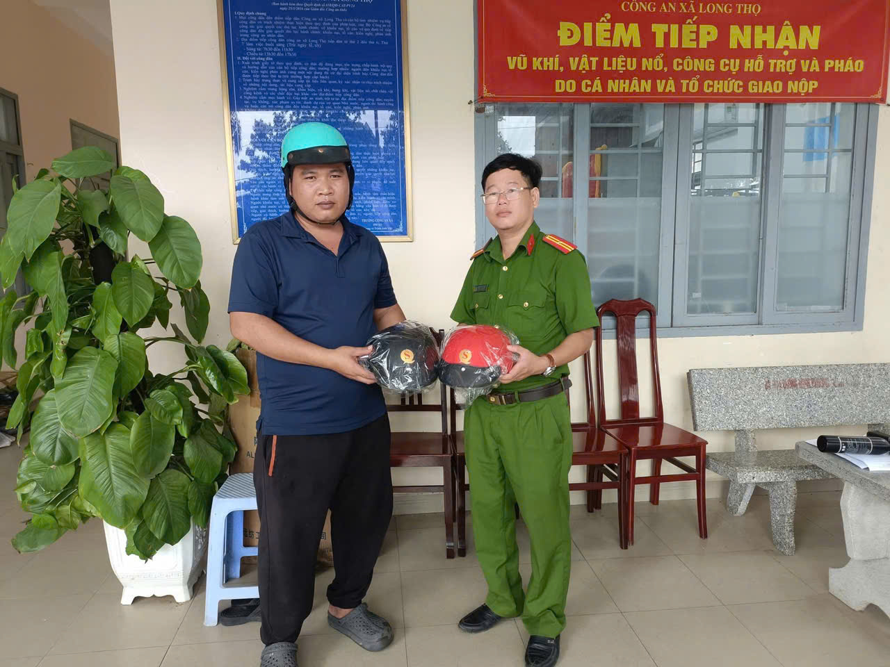 Công anh xã đã tiến hành trao tặng người dân giao nộp 01 mã tấu tặng 01 nón bảo hiểm; giao nộp 01 vũ khí tặng 02 nón bảo hiểm. Công an xã kêu gọi toàn dân giao nộp Vũ Khí-Vật liệu nổ-Công cụ hỗ trợ và pháo. Thực hiện tố giác các trường hợp tàng trữ, sử dụng, chế tạo, vận chuyển Vũ Khí-Vật liệu nổ-Công cụ hỗ trợ và pháo trái phép.
