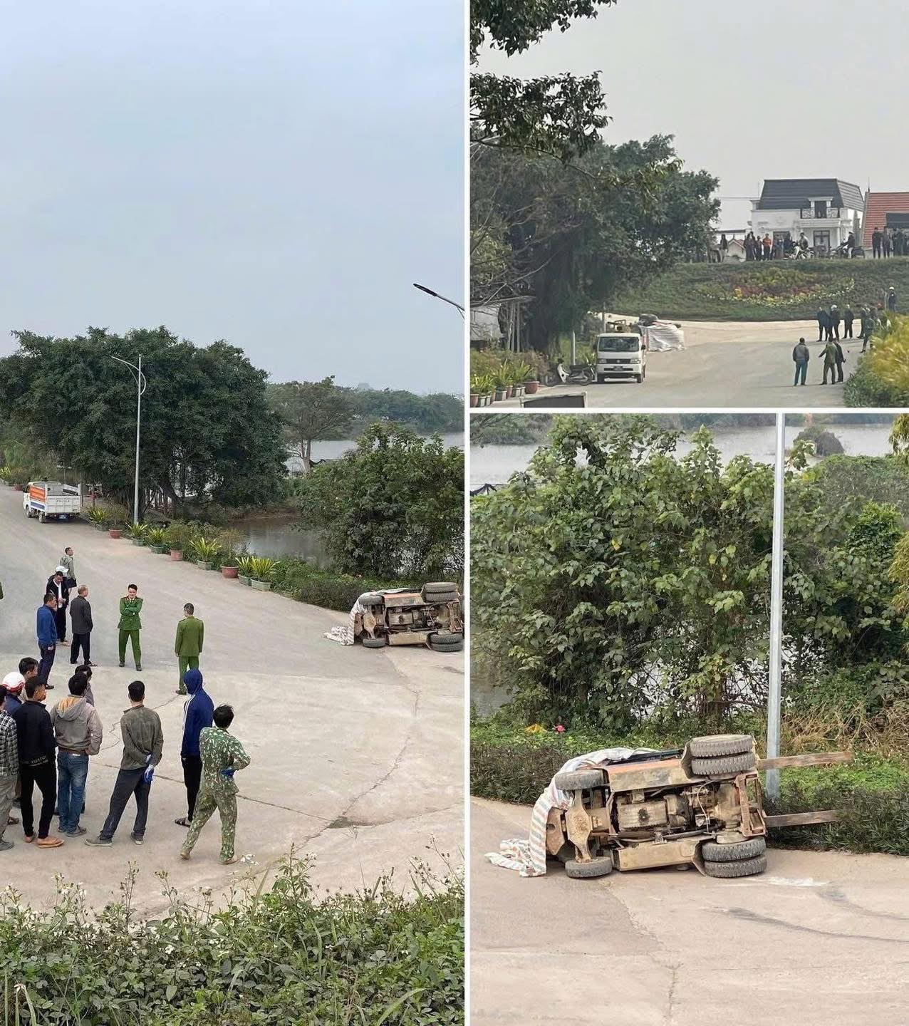 Đê Công Luận – Văn Giang lật xe nâng bác tài không qua khỏi rồi