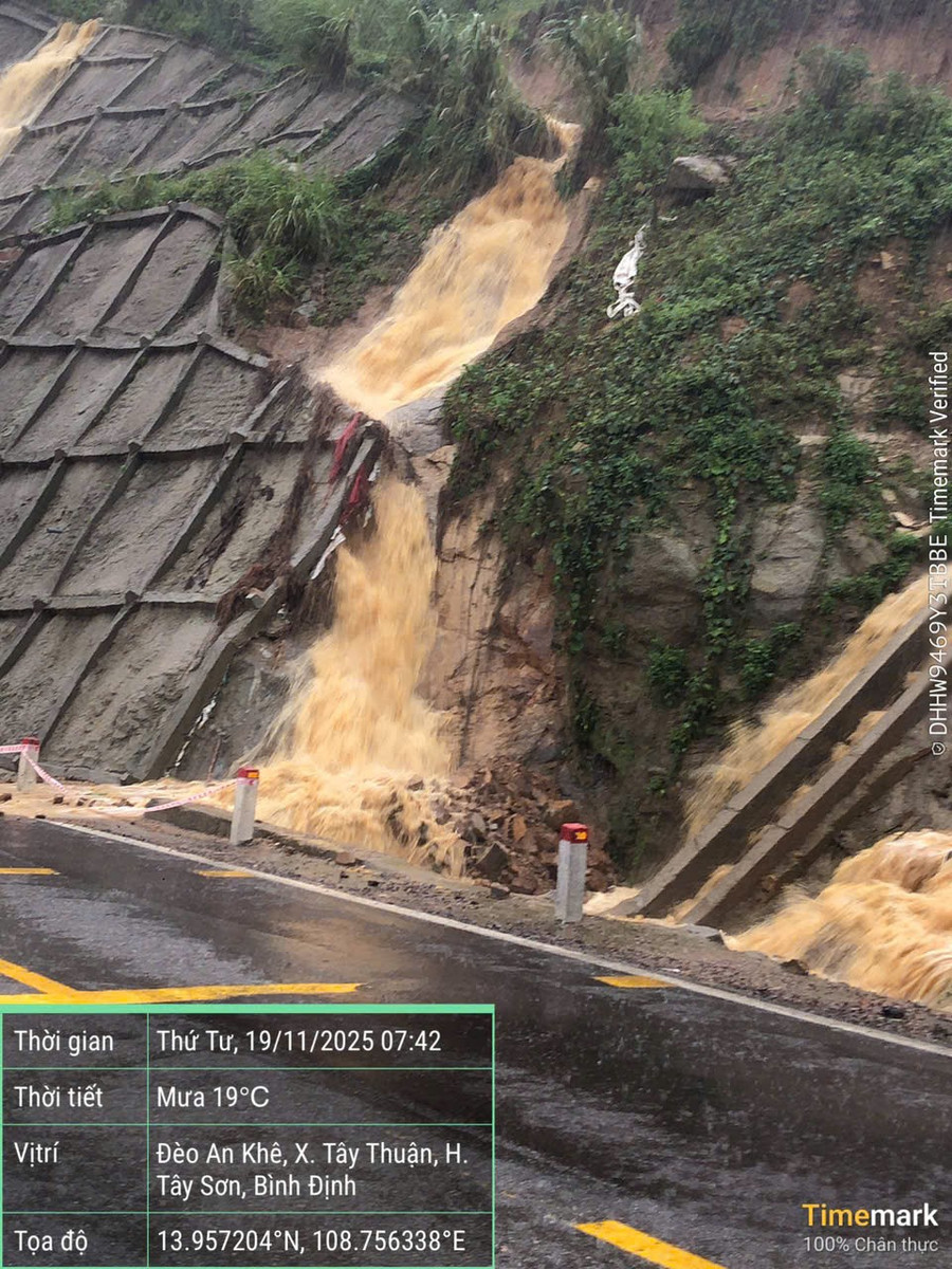 Từ khoảng 9 giờ 15 phút ngày 19-11, lực lượng chức năng đã chính thức phong tỏa, không cho các phương tiện giao thông qua lại đèo An Khê trên quốc lộ 19 vì ảnh hưởng của sạt lở.