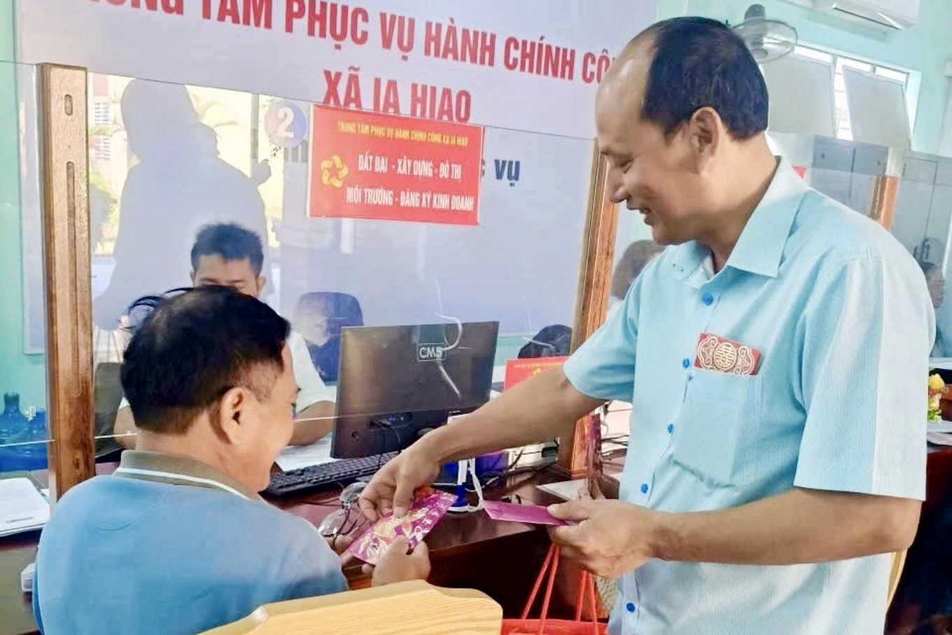 Nhân dịp đầu xuân năm mới, Thường trực Đảng ủy xã Ia Hiao trao những phần lì xì may mắn đến các công dân đến làm thủ tục hành chính. Hành động bất ngờ nhưng gần gũi này đã mang lại niềm vui cho người dân, tạo không khí phấn khởi trong ngày làm việc đầu năm.