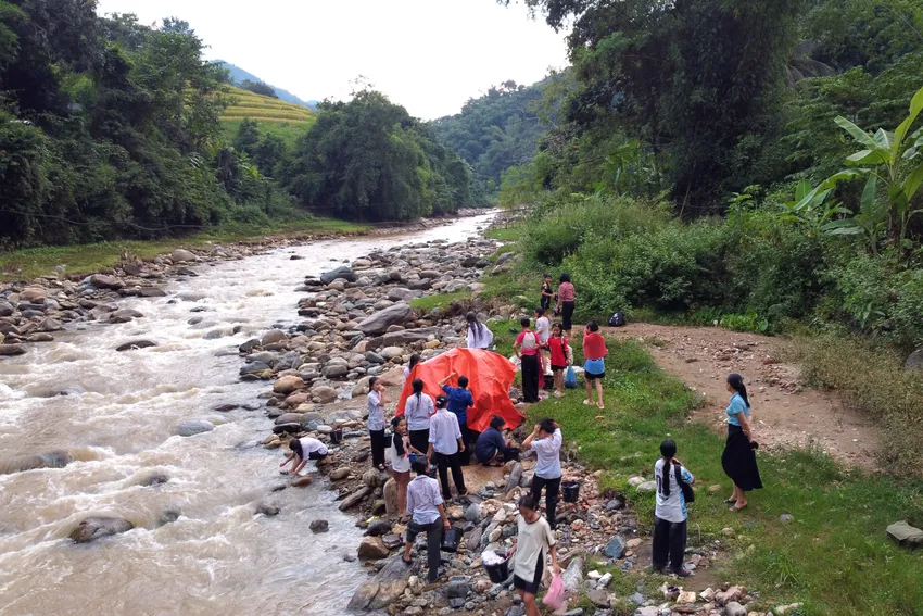 Hình ảnh các em học sinh đi tắm suối luôn được thầy cô giáo giám sát chặt chẽ.