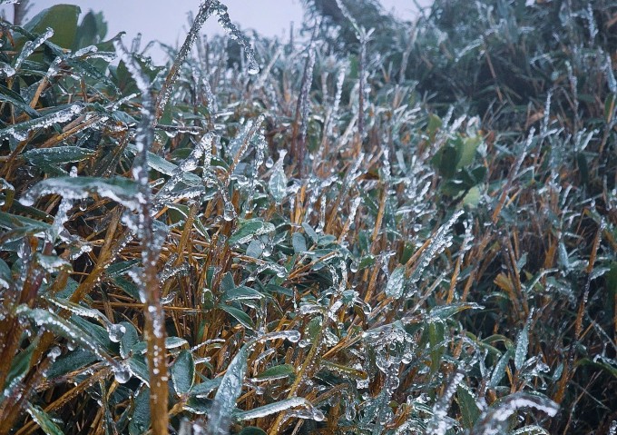 Nhiệt độ xuống dưới 0 độ C, đỉnh Phu Sa Phìn ở Lào Cai, đỉnh Ngũ Chỉ Sơn ở Lai Châu xuất hiện băng giá dày, duy trì từ sáng đến chiều.