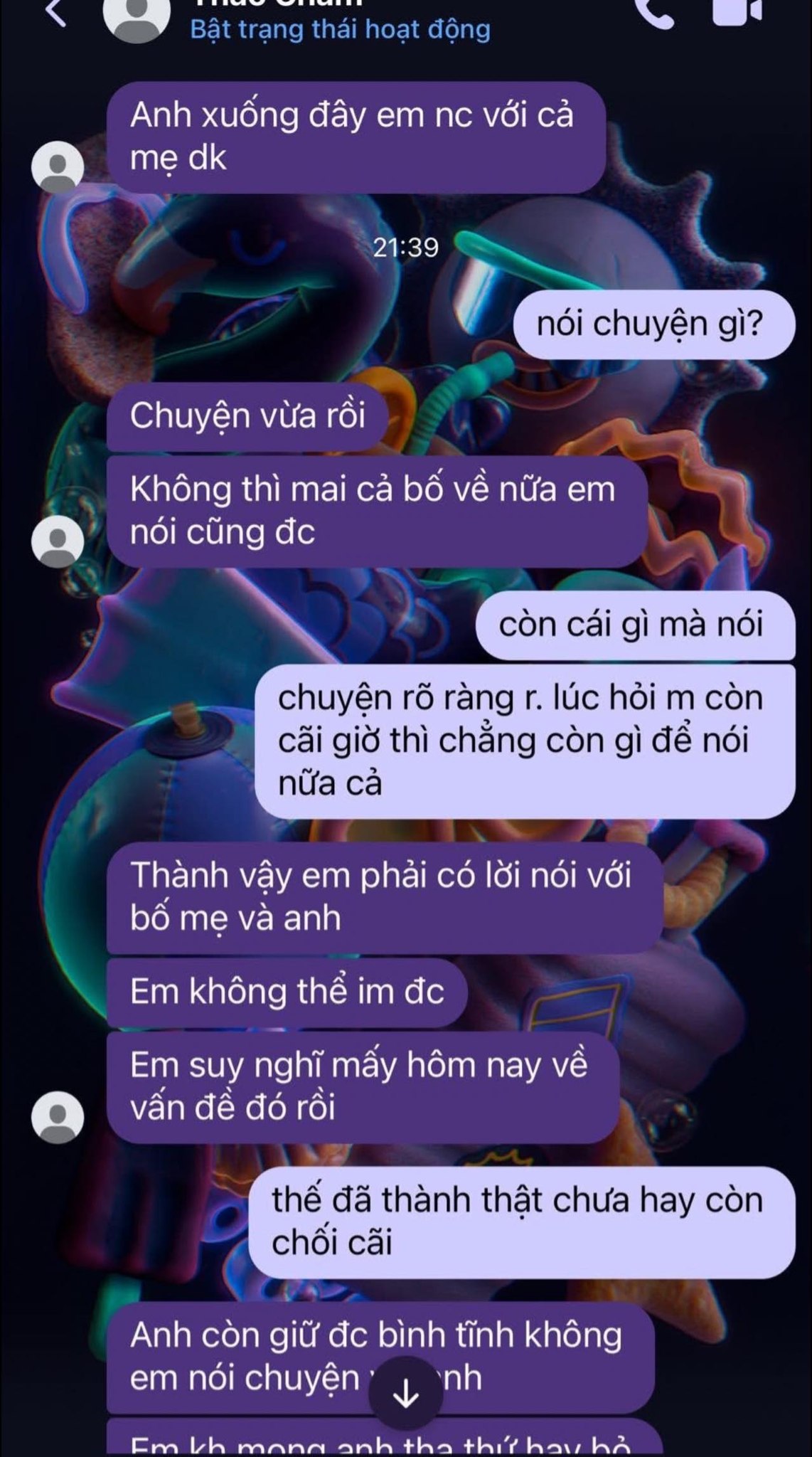 Ngày nọ, Châm mừng rỡ thông báo có thai. Quang Anh bất chấp bố mẹ can ngăn, bỏ qua hết khoảng cách địa lý mà dẫn nàng về dinh. Từ ngày về sống chung, Châm hết lần này đến lần khác táy máy tay chân, lần thì dây chuyền, nhẫn, hoa tai loanh quanh 1 cây vàng, lần thì 10tr, 8r, bà cạy cả két mượn hẳn 50tr. Mặc dù vậy, gia đình Quang Anh vẫn mủi lòng vì thương con, thương cháu mà bao bọc Thảo Châm, không nặng lời lấy 1 lần (Đúng gia đình Phật 😓)