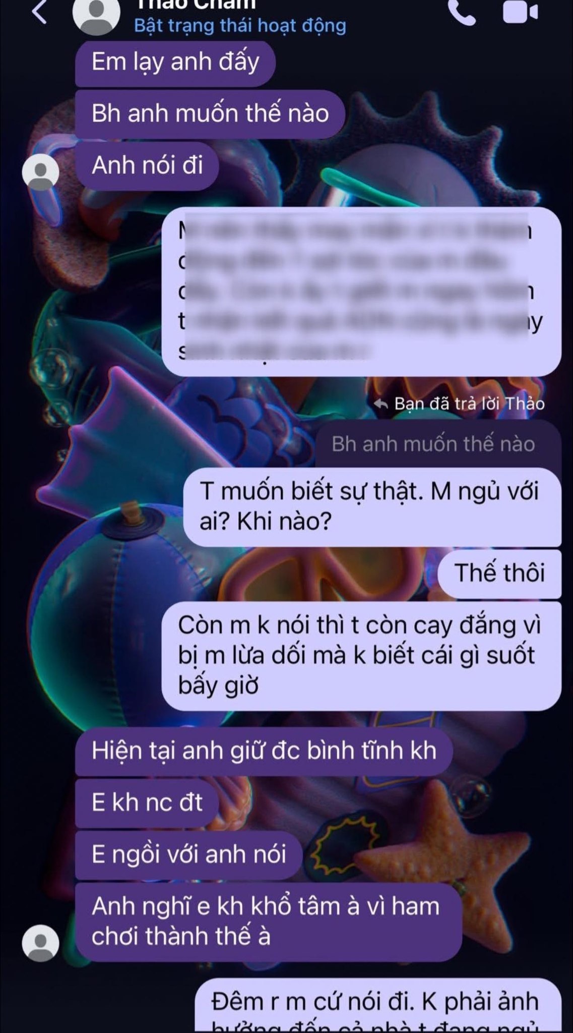 Tưởng rằng hôn nhân cứ tềnh tàng vậy mà trôi qua, càng ngày thằng Gấu (con chung của cả hai) lớn lên chẳng thấy giống bố tí nào. Nhân ngày sinh nhật tuổi 28, Quang Anh tự thưởng bản thân bằng cách đem mẫu móng đi xét nghiệm ADN. Kết quả trả về là không có quan hệ thân nhân. Châm chối đây đẩy khóc bù lu bù loa cho đến khi có tờ giấy xét nghiệm lần thứ 3 thì Châm im hẳn. Châm bảo là hôm ấy sinh nhật Châm say quá, ai làm gì Châm không nhớ.