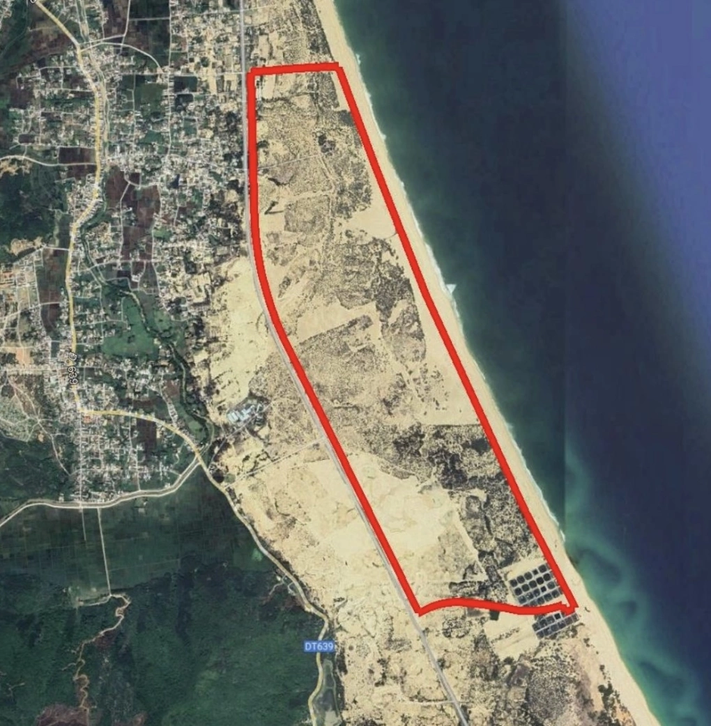 Vị trí khu vực thực hiện dự án văn hóa, thể dục thể thao, vui chơi giải trí, du lịch ven biển Cát Tiến. Ảnh: ĐTM