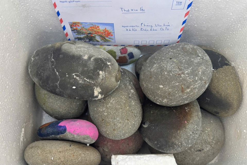 Ngày 16/11, trao đổi với Tri Thức – Znews, ông Nguyễn Hải Linh, Trưởng phòng Văn hóa – Xã hội đặc khu Cô Tô (tỉnh Quảng Ninh), cho biết hai ngày trước đơn vị nhận một bưu phẩm đặc biệt gửi qua đường bưu điện từ Hạ Long. Bên trong là 14 kg đá cuội cùng một bức thư xin lỗi.