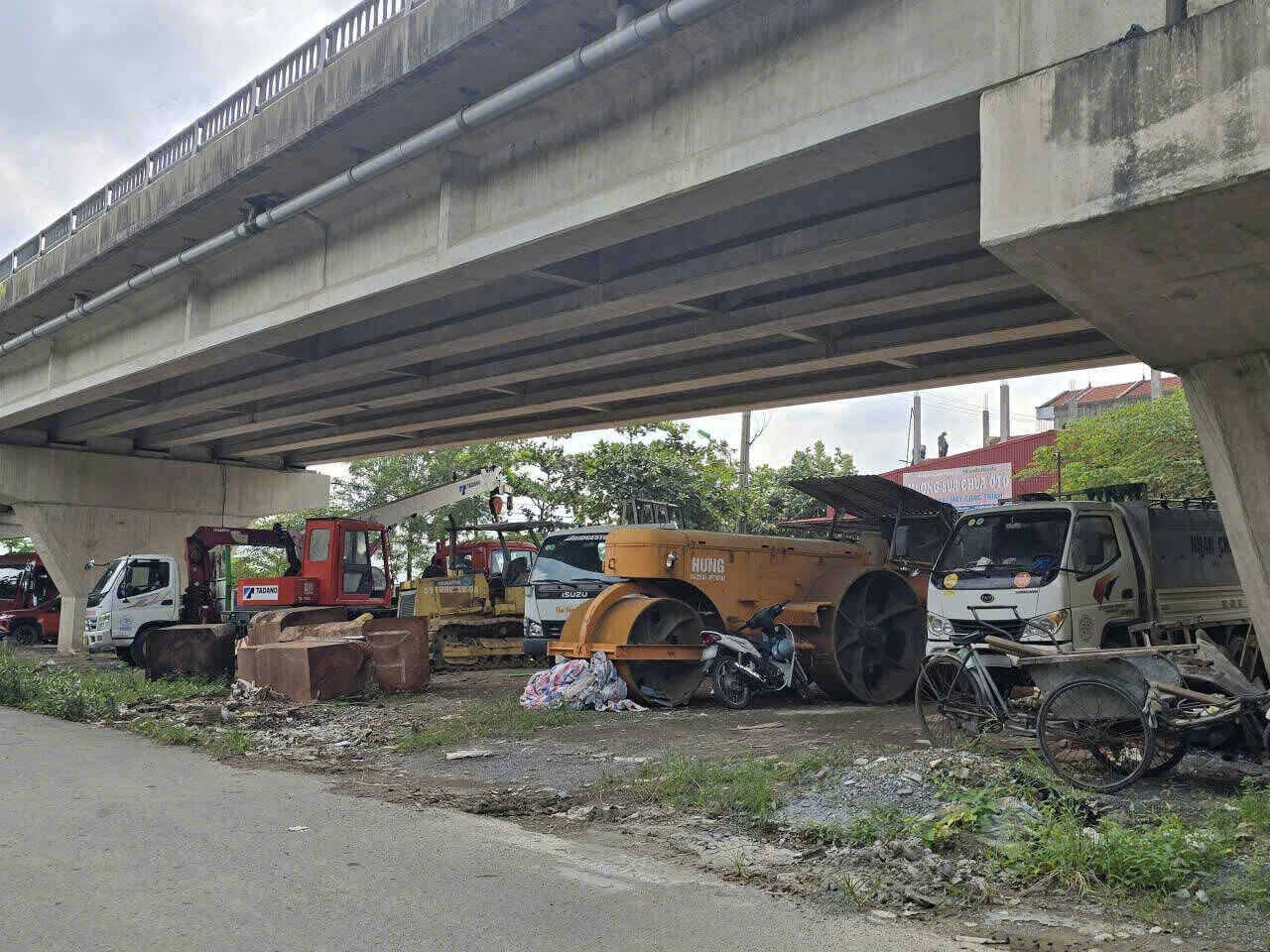 Gầm cầu vượt tại Ninh Bình bị chiếm dụng làm nơi đậu xe, bãi tập kết gỗ