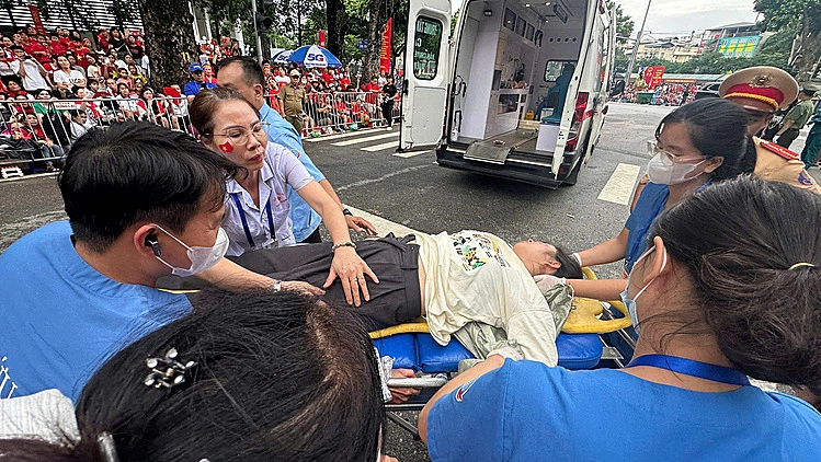 Cụ thể, 439 trường hợp được xử trí cấp cứu tại chỗ, 43 người phải chuyển viện. Nhiều nhất là buổi tổng duyệt hôm 30/8 có 213 bệnh nhân, trong đó 19 trường hợp phải nhập viện còn lại được xử trí tại chỗ. Bệnh nhân chủ yếu bị choáng, co giật nhẹ, ngất, run chân tay, say nắng, buồn nôn, đau đầu, đau bụng, dị ứng, khó thở, tụt huyết áp, tăng huyết áp, rối loạn tiêu hóa…