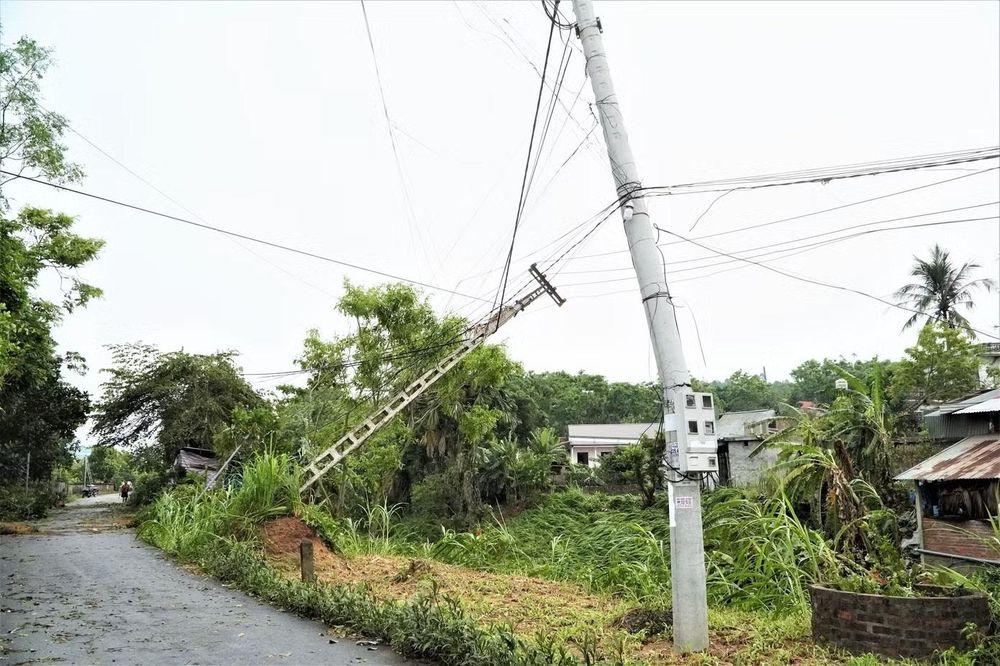 Giông lốc làm cột điện bị gãy, gây mất điện.