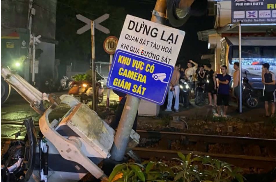 • Hà Nội ‼ Ô tô vượt đường ngang dân sinh bị tàu SE6 tô.ng biến dạng, văng ra xa