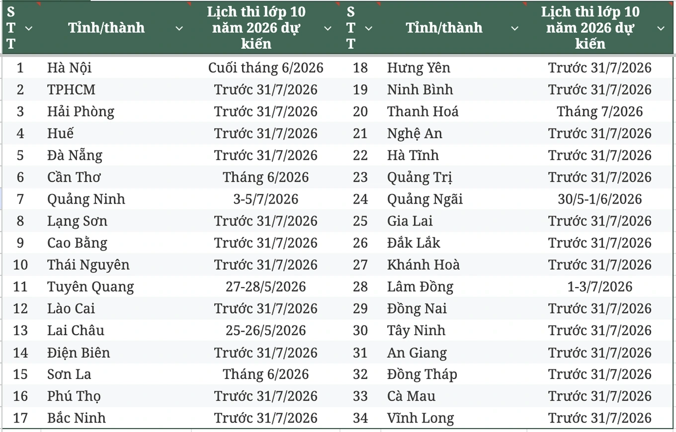 Kỳ thi lớp 10 năm 2026 là kỳ thi vào THPT đầu tiên sau sắp xếp tỉnh thành. Thay vì 63 tỉnh, năm nay sẽ chỉ còn 34 tỉnh. Các tỉnh mới sắp xếp 2-3 tỉnh cũ sẽ phải điều chỉnh lịch thi mới trên toàn địa phương.