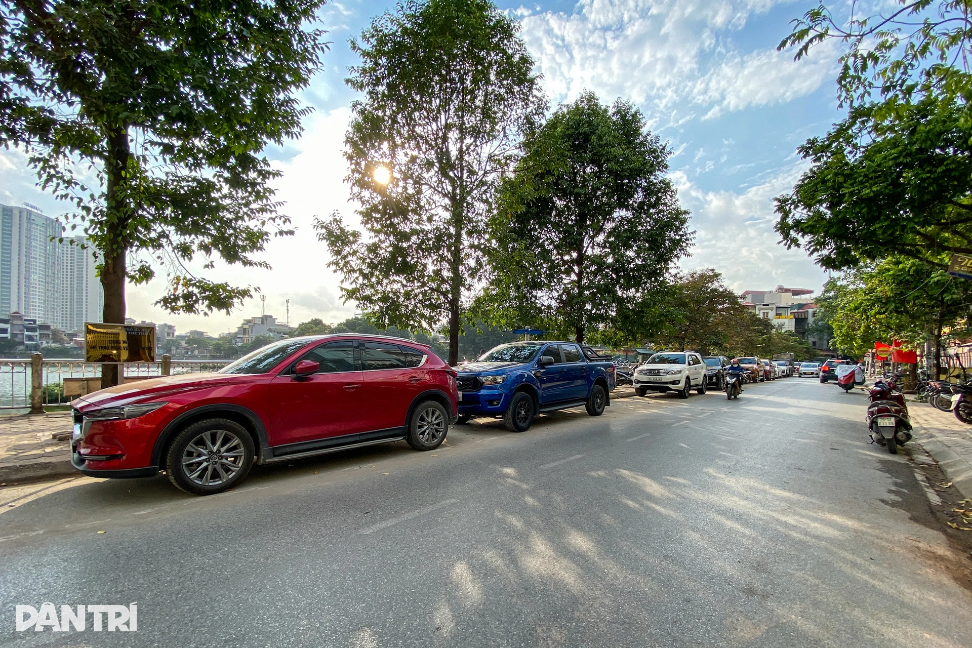 Bà M.T.T. (50 tuổi, trú tại phường Định Công, TP Hà Nội) cho biết, hằng ngày khi đi qua khu vực hồ Hạ Đình đều chứng kiến hàng dài ô tô đỗ dưới lòng đường, ven hồ, gây cản trở giao thông, nhất là vào thời điểm học sinh trường tiểu học và trường THCS Hạ Đình tan học.