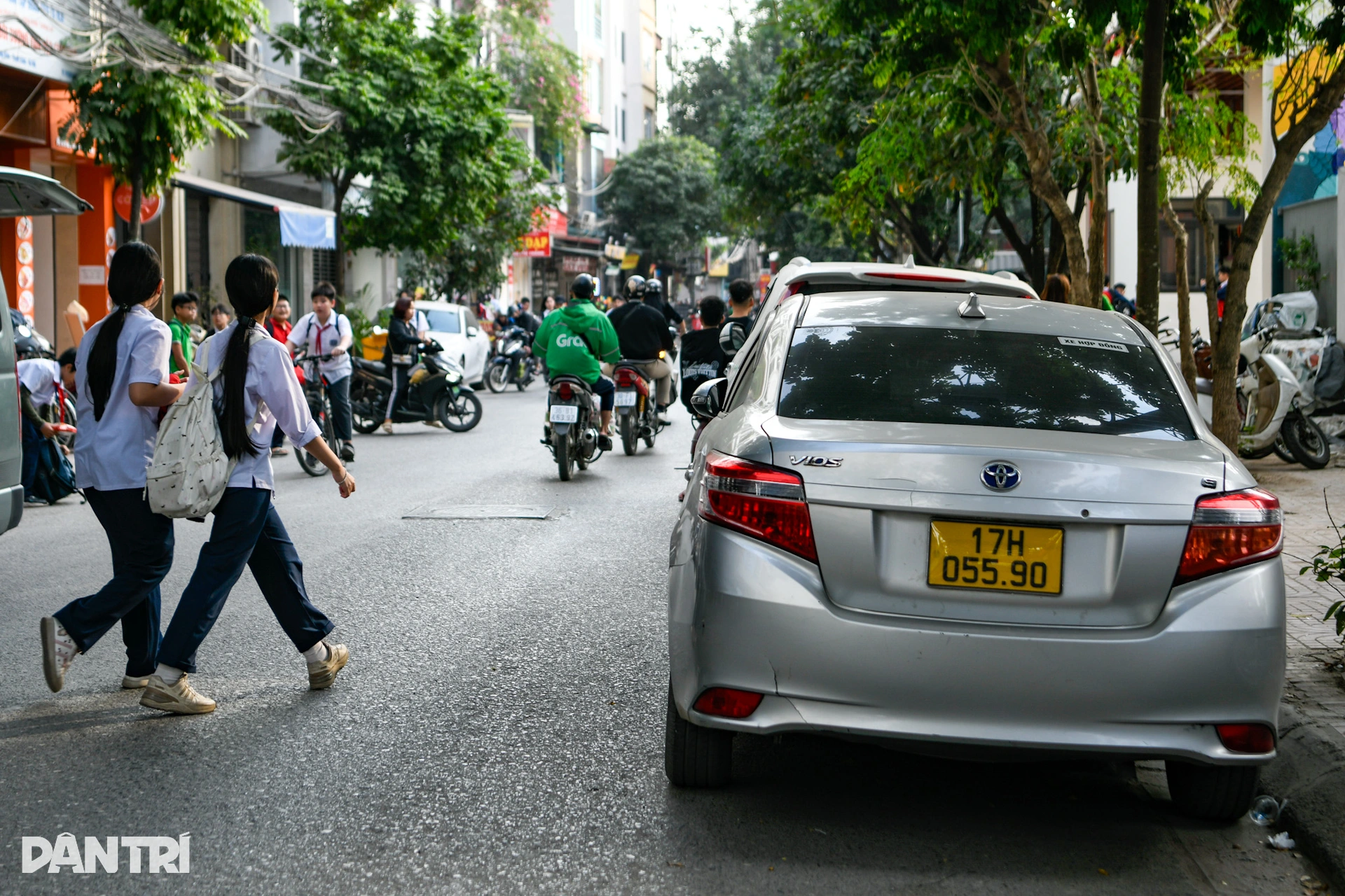 Vỉa hè quanh trường tiểu học Hạ Đình (phường Khương Đình) bị biến thành bãi đỗ xe suốt thời gian dài. Học sinh và người đi bộ buộc phải xuống lòng đường, tiềm ẩn nguy cơ tai nạn.
