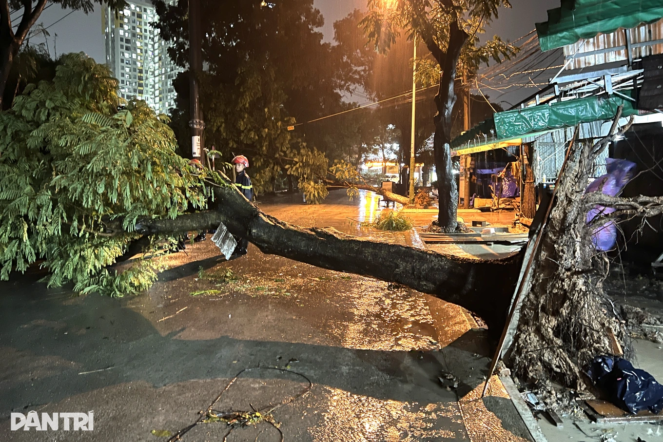 Thời điểm trên, một người bà chở cháu trên xe máy qua khu vực, bất ngờ bị cây đè trúng. Phát hiện vụ việc, người dân chạy đến ứng cứu. Người bà và cháu trai được đưa đi bệnh viện cấp cứu.