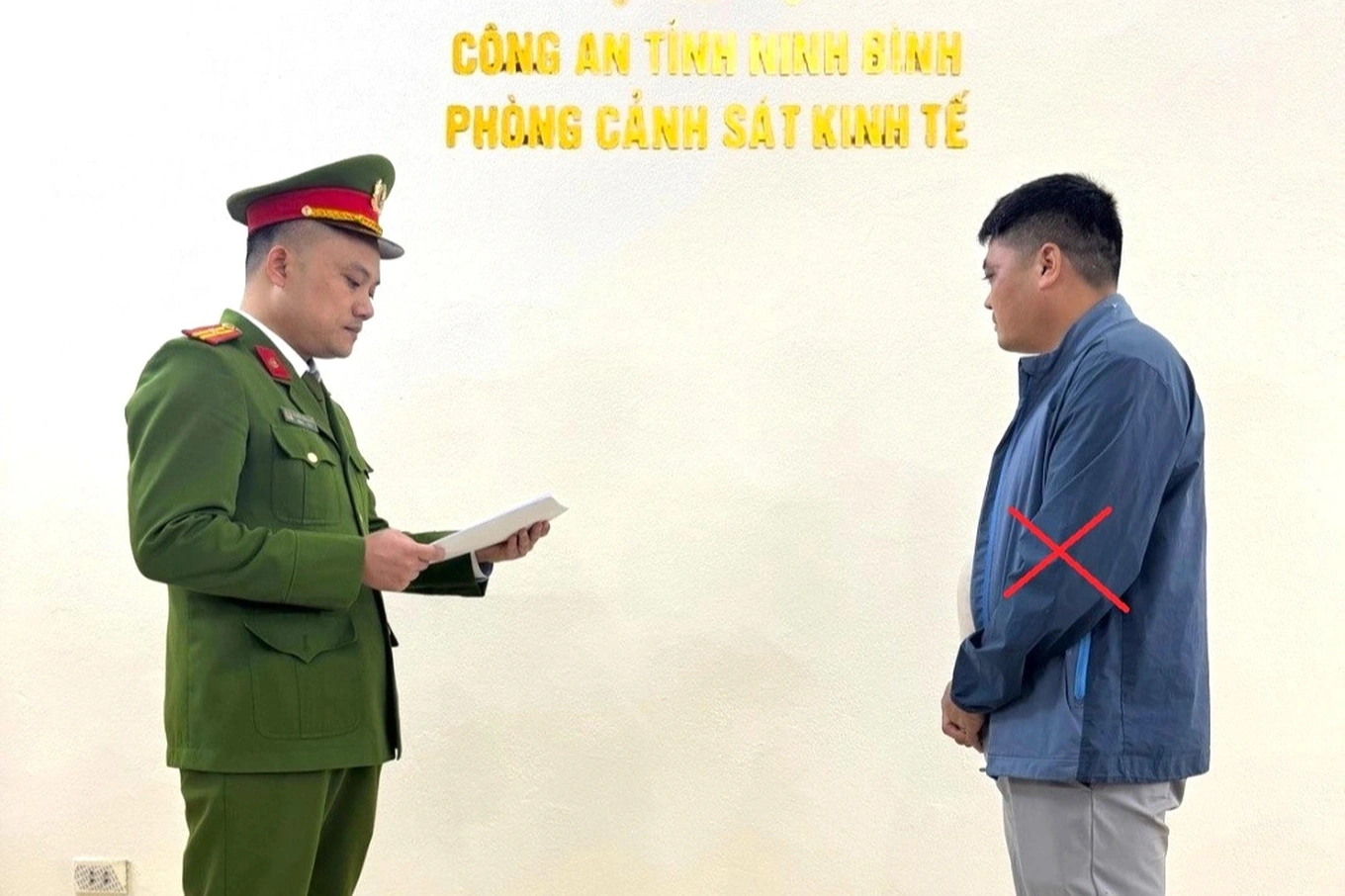 Cơ quan công an đọc lệnh khởi tố với Trần Văn Khánh (Ảnh: Công an Ninh Bình).