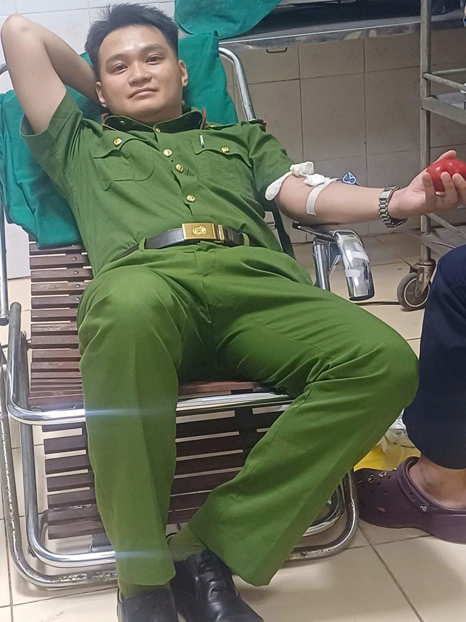🔴 Ngay lập tức, Chỉ huy Công an xã đã phát thông báo nội bộ. Với tinh thần trách nhiệm và nghĩa cử cao đẹp, đồng chí Đại úy Nguyễn Bảo Ngọc – cán bộ của đơn vị, người có cùng nhóm máu AB, đã không chút chần chừ, nhanh chóng đến bệnh viện thực hiện hiến máu.