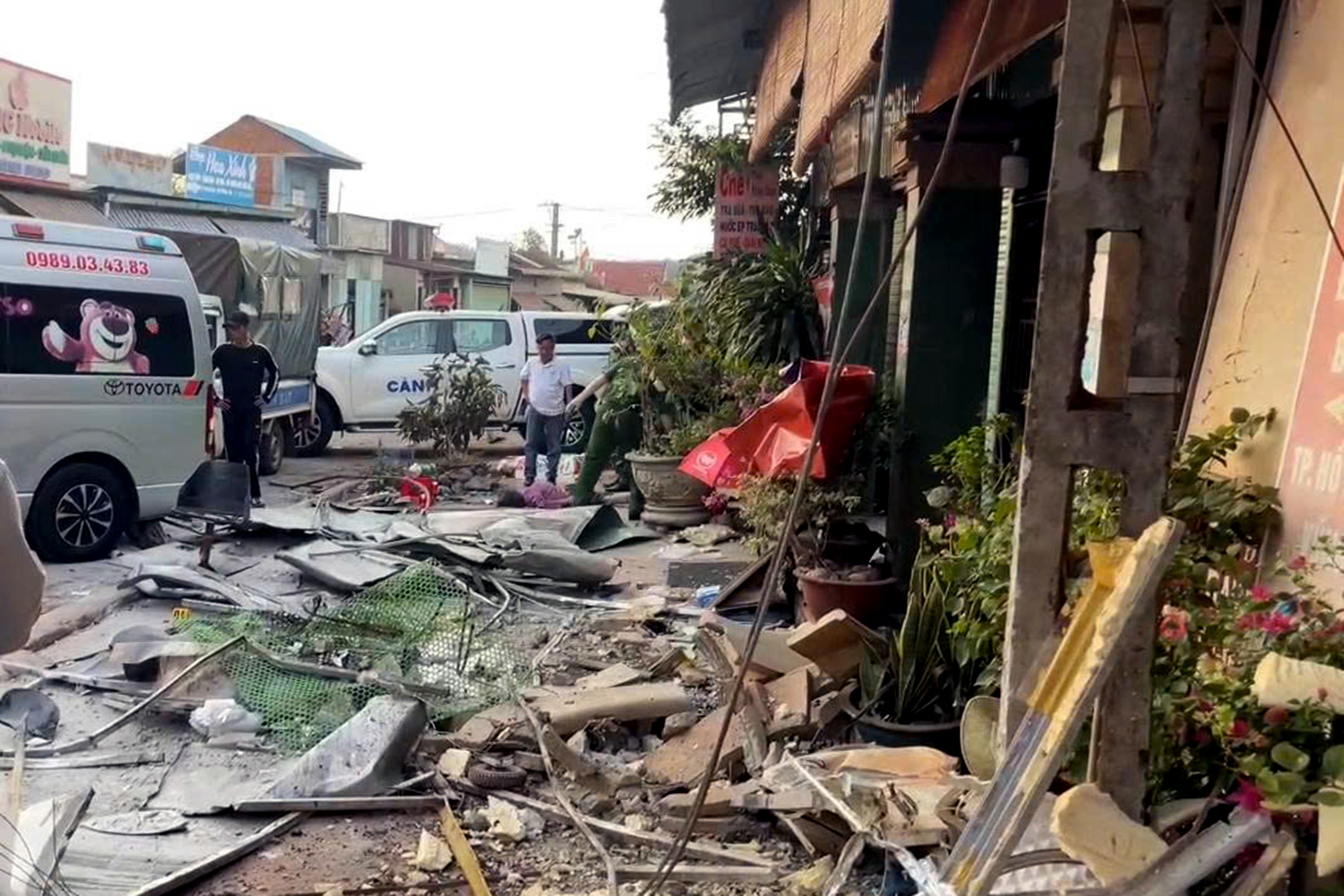 Sau đó, xe lu này tiếp tục lao lên lề đường đụng vào trước nhà bà Thủy (59 tuổi, thôn 3, xã Bình Tân) mới dừng lại.
