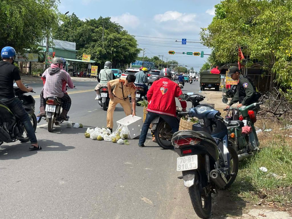 Ngay lúc đó, 2 CSGT và 1 Cảnh sát cơ động đang kiểm tra gần đó nhanh chóng có mặt để xử lý tình huống, hỗ trợ người dân thu dọn hàng hóa, phân luồng giao thông, bảo đảm an toàn cho các phương tiện qua lại. Hành động kịp thời, tận tâm và trách nhiệm ấy thật sự rất đẹp, để lại hình ảnh gần gũi, nhân văn của người chiến sĩ Công an Nhân dân trong lòng người dân. Ban chỉ huy của Đội CSGT đường bộ số 1, Phòng CSGT Công an tỉnh Tây Ninh xác nhận, hình ảnh 2 chiến sĩ CSGT nhặt trái cây giúp người dân trên mạng xã hội lan truyền là cán bộ của Đội.