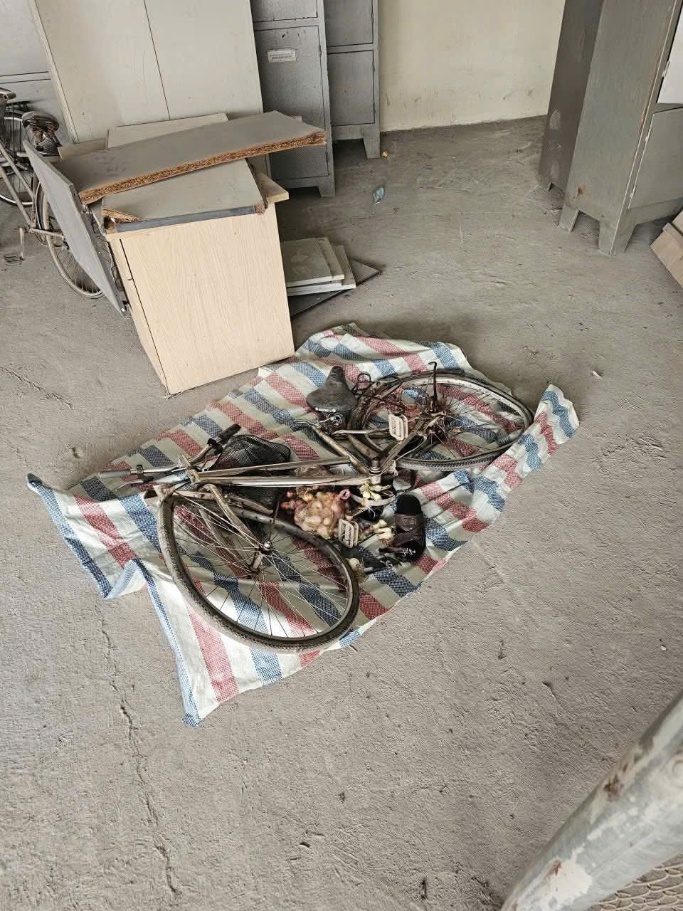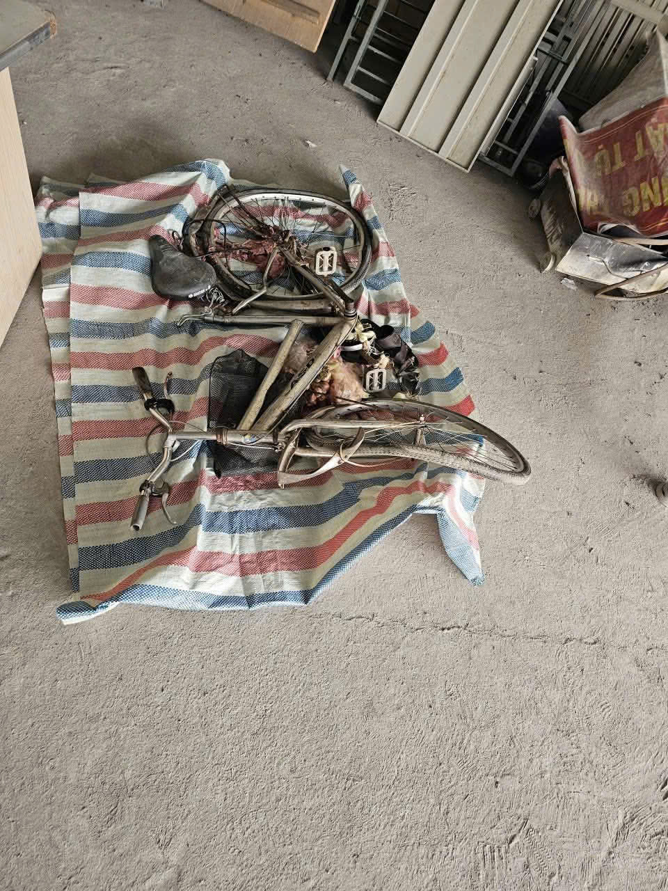 Dưới đây là xe đạp và bộ quần áo của ông , có ai thấy quen thì liên hệ giúp người nhà tới công an xã Hoàng Hoa Thám , thithe ông hiện đang ở nhà xác.