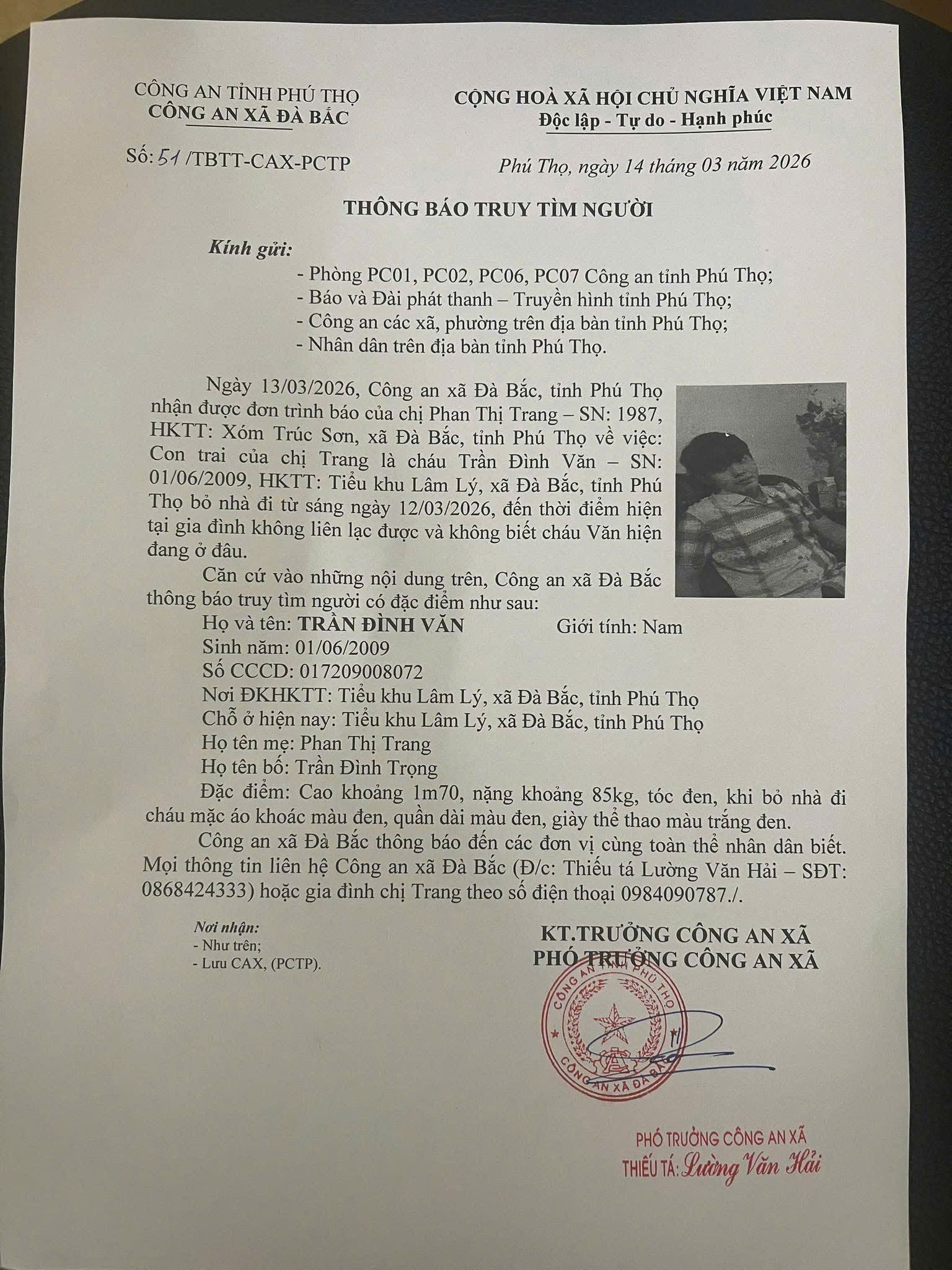 Hoà Bình cũ: Nam sinh 17 tuổi rời nhà đi, mất liên lạc nhiều ngày, gia đình khẩn cầu CĐM giúp đỡ