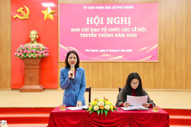 Hội nghị đã thông qua Quyết định số 106/QĐ-UBND ngày 15/1/2026 của UBND xã kiện toàn Ban Chỉ đạo tổ chức các lễ hội truyền thống trên địa bàn xã Phú Nghĩa năm 2026; Kế hoạch số 174/KH-UBND ngày 08/12/2025 quản lý và chỉ đạo tổ chức các lễ hội truyền thống năm 2026 đồng thời thông qua danh sách các lễ hội được tổ chức trong năm.
