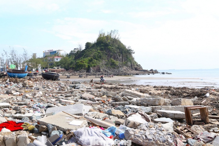 Tuyến đường dạo bộ rộng 5m chạy dọc mép kè biển bị tàn phá nghiêm trọng. Sau bão, mặt đường bê tông kiên cố bị sóng đánh nứt toác, vỡ vụn thành từng mảng lớn, nhiều đoạn bị hất tung lên, nằm ngổn ngang.