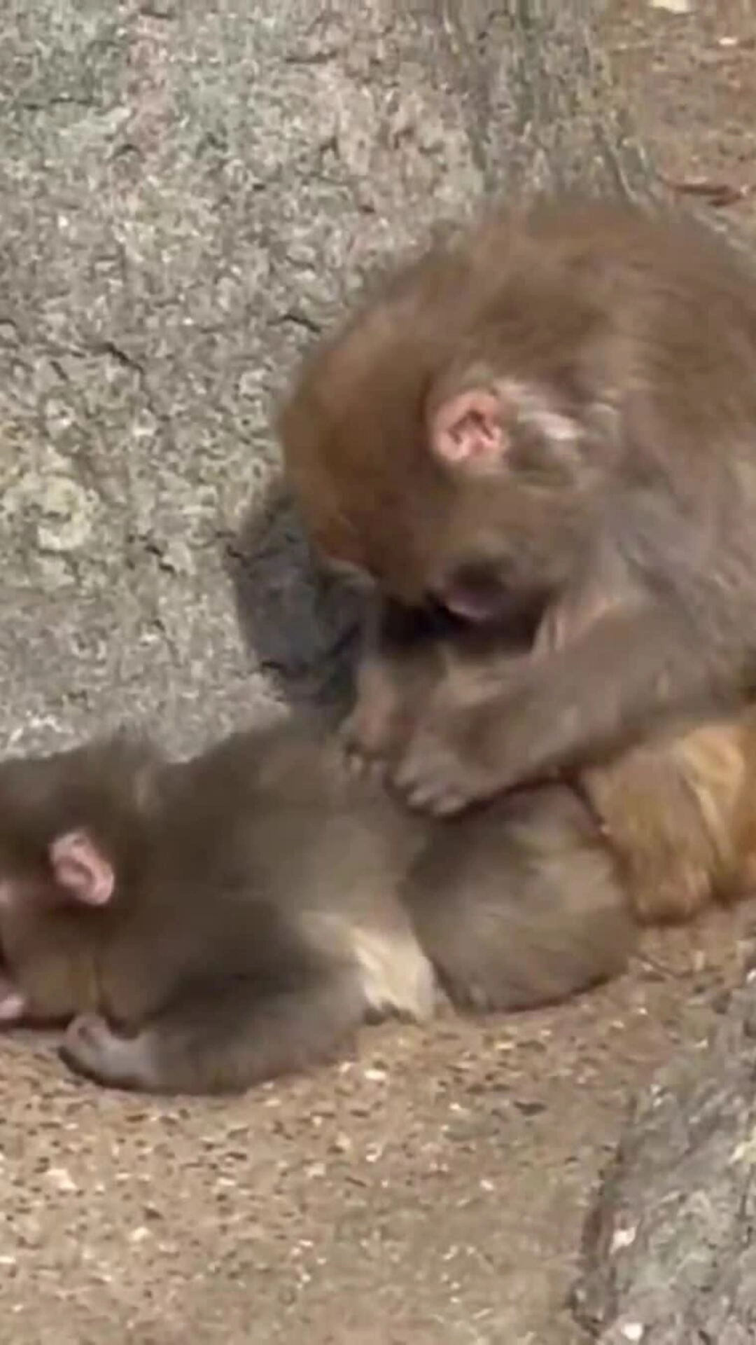 Khỉ con Punch bị khỉ trưởng thành xua đuổi trong vườn thú ở thành phố Ichikawa, ngoại ô Tokyo, Nhật Bản ngày 19/2. Video: X/Ian Miles Cheong