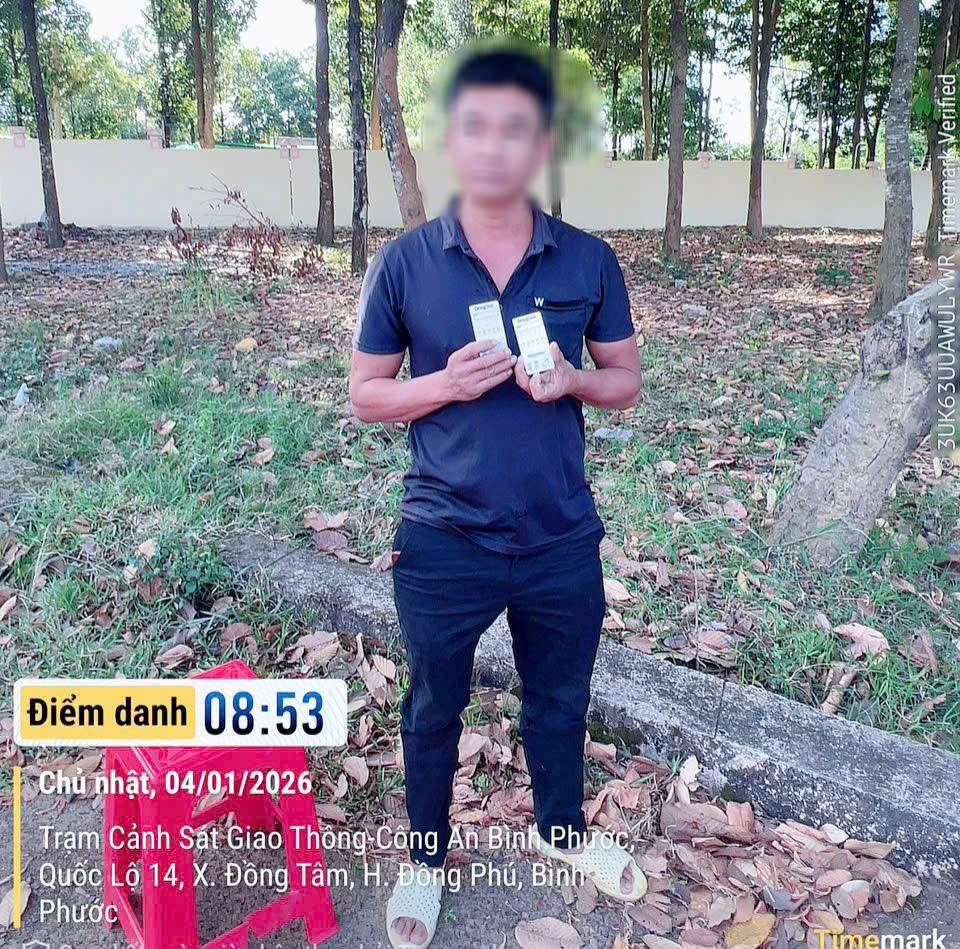 Sau khi tiếp nhận thông tin, Trạm CSGT Đồng Phú đã nhanh chóng tổ chức kiểm tra, xác minh. Đến khoảng 8 giờ 25 phút ngày 4-1-2026, tại Km948, Quốc lộ 14, ấp Đồng Tâm 2, xã Đồng Tâm, tỉnh Đồng Nai, tổ công tác phát hiện tài xế H.V.H. (41 tuổi, ngụ tỉnh Nghệ An) điều khiển xe đầu kéo biển số 50H-293.xx kéo theo rơ móc 50RM-127.xx nên tiến hành dừng phương tiện để kiểm tra. Qua kiểm tra, tài xế H. d/ương tính với chất ma t/uý MET.
