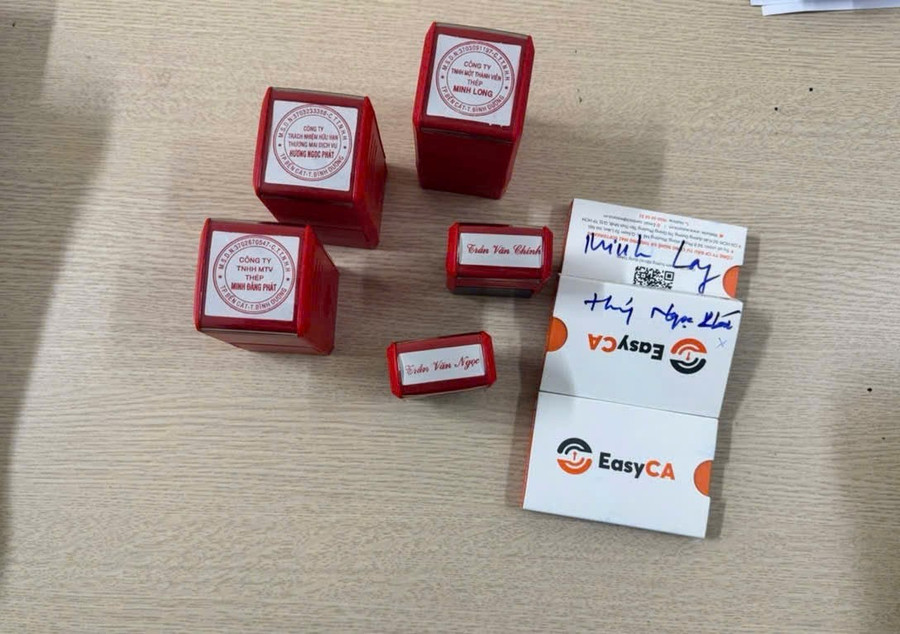 | Con dấu, Token của các công ty “ma” do bị can điều hành hoạt động. |