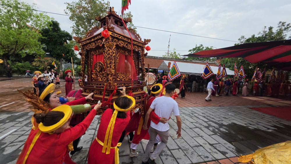 Đáng chú ý, đội hình rước được sắp xếp theo trình tự nghiêm ngặt với hàng chục đoàn tham gia. Nổi bật là các kiệu long đình rước tượng các vị thánh, kiệu bát cống chứa sắc phong, cùng kiệu rước tượng Trần Hưng Đạo, vị anh hùng dân tộc gắn liền với chiến thắng Bạch Đằng năm 1288.