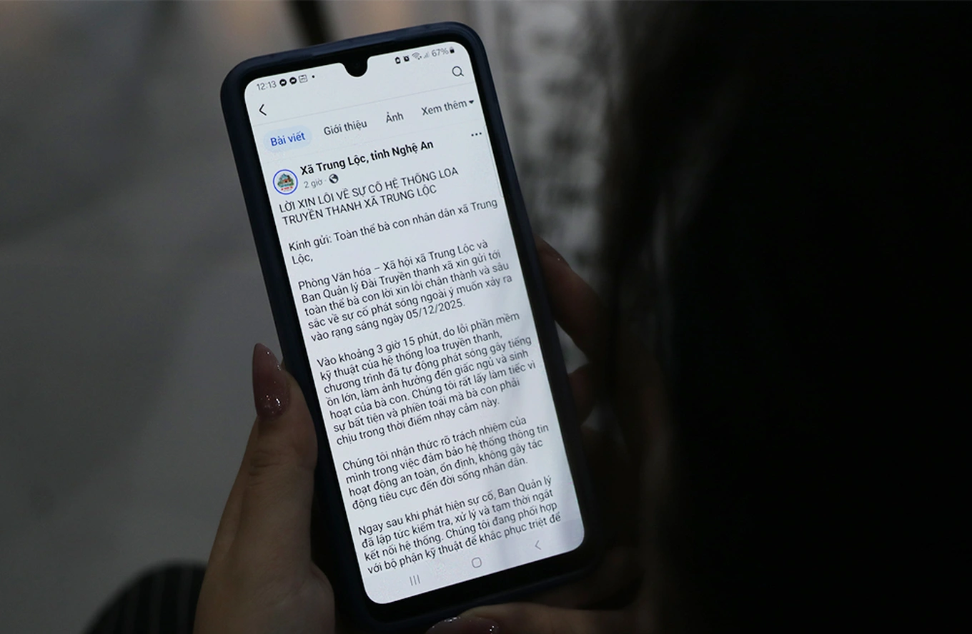 Sáng 5/12, trang mạng xã hội của xã Trung Lộc (Nghệ An) phát đi lời xin lỗi tới người dân liên quan đến sự cố của hệ thống loa truyền thanh xã.