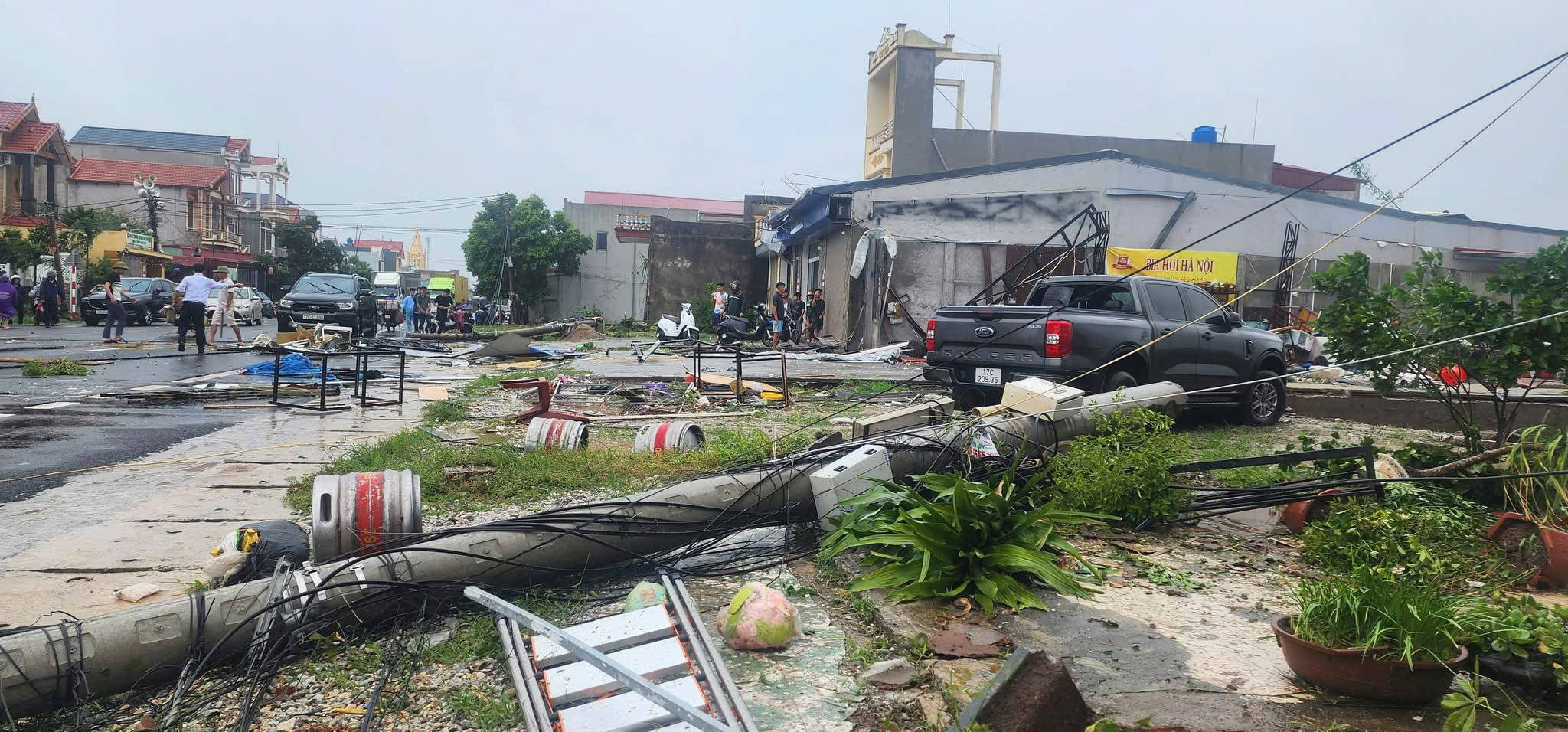 Tại xã Hải Anh, cơn lốc làm gãy 30 cột điện, sập một số nhà, 1 người tử vong. Tại tổ 3 xã Thịnh Long, có một số ngôi nhà bị tốc mái và sập đổ khiến 1 người tử vong, 4 người bị thương.