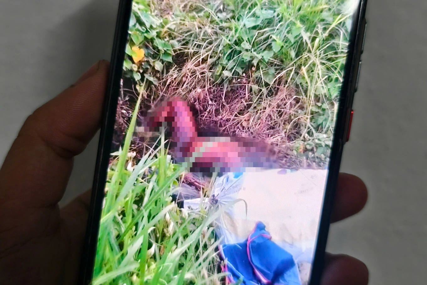 Thi thể nạn nhân bắt đầu phân hủy, nằm giữa bụi cỏ dại. Một bao tải lớn màu trắng được tìm thấy tại hiện trường.