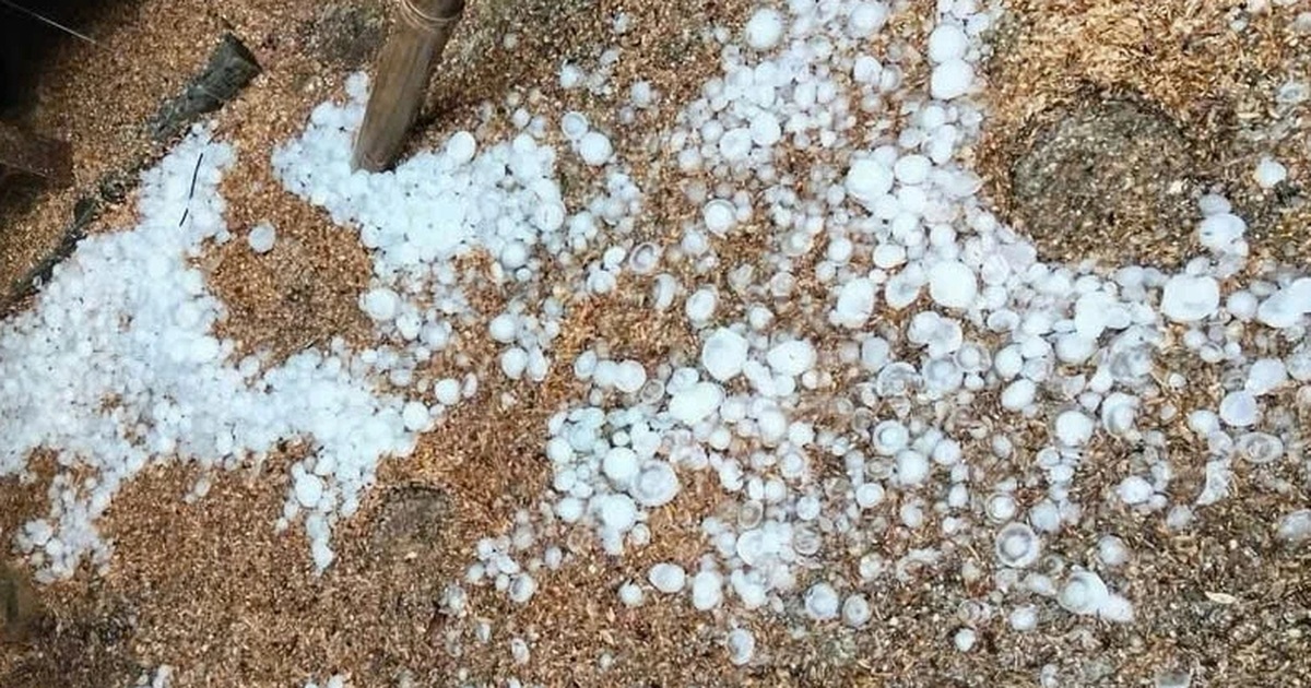 Mưa đá xuất hiện ở Cao Bằng chiều 31/3 (Ảnh: CTV).
