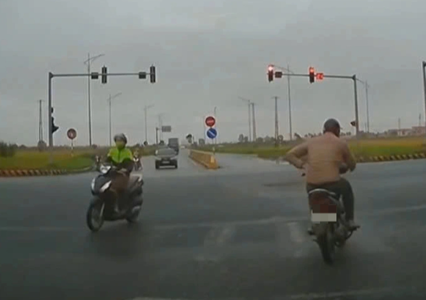 Trong lúc mọi người đang chờ đèn đỏ tại ngã tư, tài xế N.A.T. (quê Hưng Yên) đã điều khiển xe máy vượt đèn đỏ. Hành vi này tiềm ẩn nguy cơ xảy ra tai nạn giao thông.