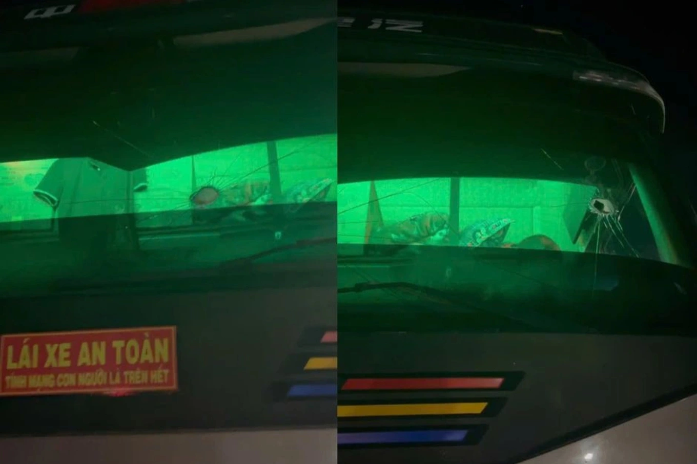 Một viên đá rơi trúng xe tải đầu kéo do anh T.Q.L. (SN 1982, trú tại tỉnh Đắk Lắk) điều khiển, làm thủng và rạn vỡ kính chắn gió trước.