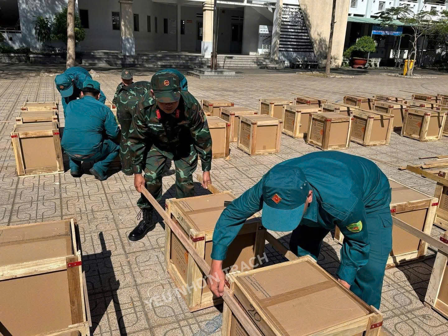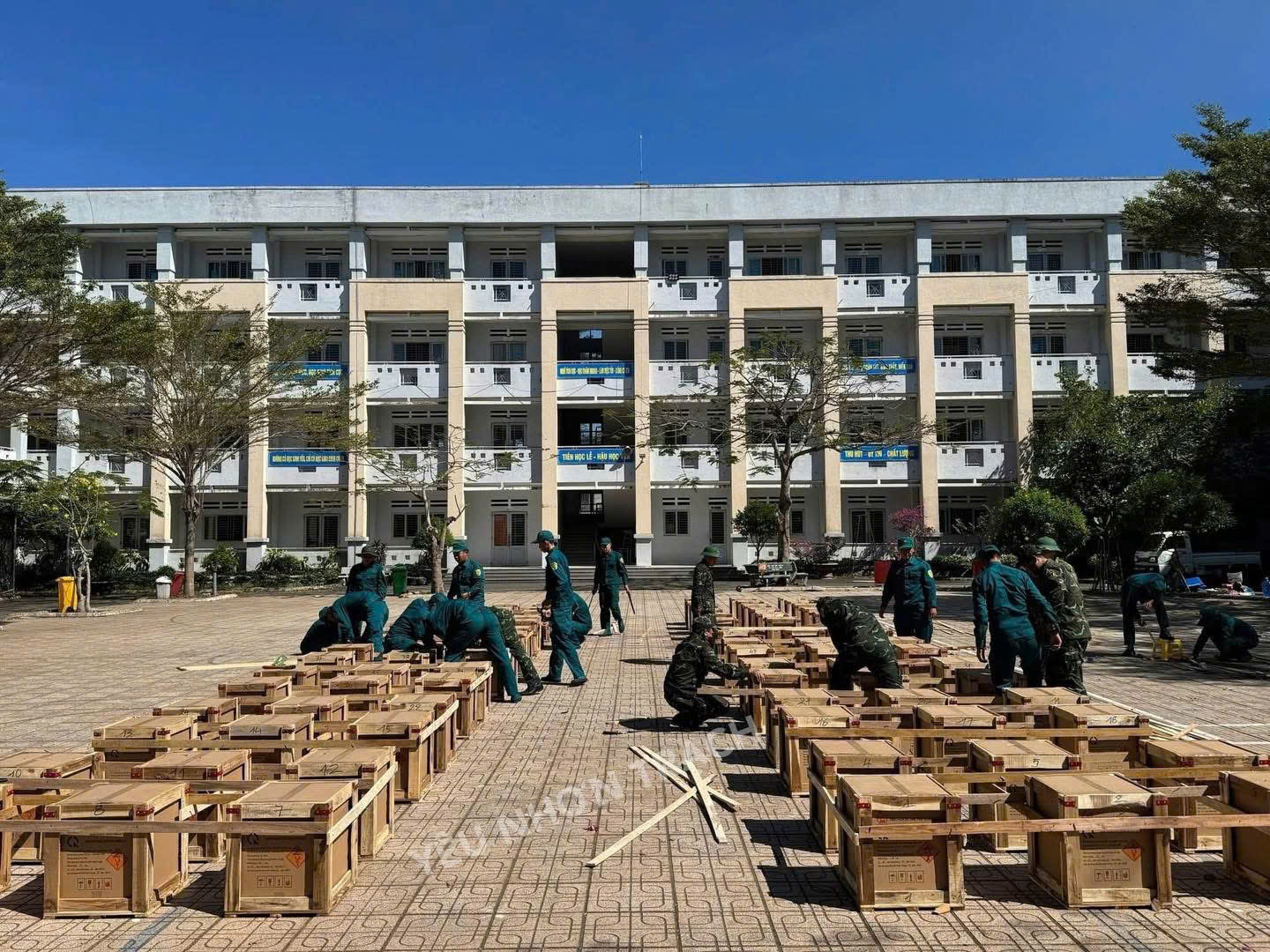 Ngay lúc này tại Đại Phước, Địa điểm trường THPT Nhơn Trạch Trận địa pháo hoa nghệ thuật bắt đầu lắp đặt tất bật chuẩn bị cho đêm giao thừa tối nay