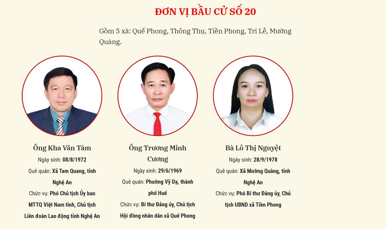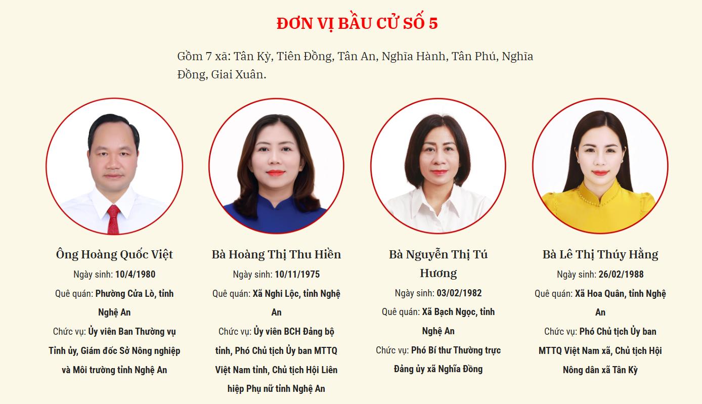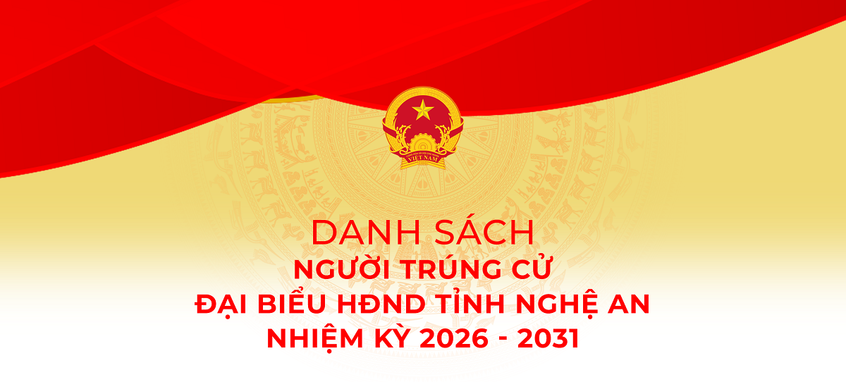 Ngày 19/3, Ủy ban bầu cử tỉnh Nghệ An ban hành Nghị quyết số 139/NQ-UBBC về việc xác nhận tư cách đại biểu Hội đồng nhân dân nhiệm kỳ 2026-2031. Trân trọng giới thiệu danh sách người trúng cử đại biểu Hội đồng Nhân dân tỉnh Nghệ An nhiệm kỳ 2026 – 2031.