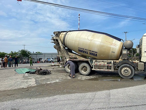 Thông tin ban đầu, vào khoảng 8h ngày 24/9, khi đến địa điểm trên, xe tải chở bồn xi măng nhãn hiệu Bê tông Thành Vinh mang BKS: 37H-071.64 (chưa rõ danh tính tài xế) đang rẽ từ Quốc lộ 1A, băng qua đường tàu vào đường gom dân sinh thì bất ngờ va chạm với xe máy mang BKS: 37K1-900.31 do người phụ nữ điều khiển.