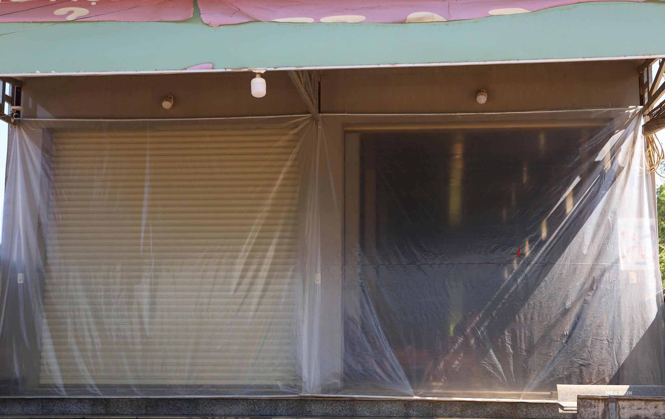 Cửa hàng giải khát kết hợp tạp hóa của chị Đỗ Thị Kim Hương, ở tổ dân phố Tân Nghi, gần như lúc nào cũng đóng kín cửa. Để hạn chế ô nhiễm, chị dùng nylon phủ kín hàng hóa, từ bánh kẹo, mì gói đến các vật dụng sinh hoạt. Tuy vậy, lớp bụi mịn len lỏi vào bên trong.