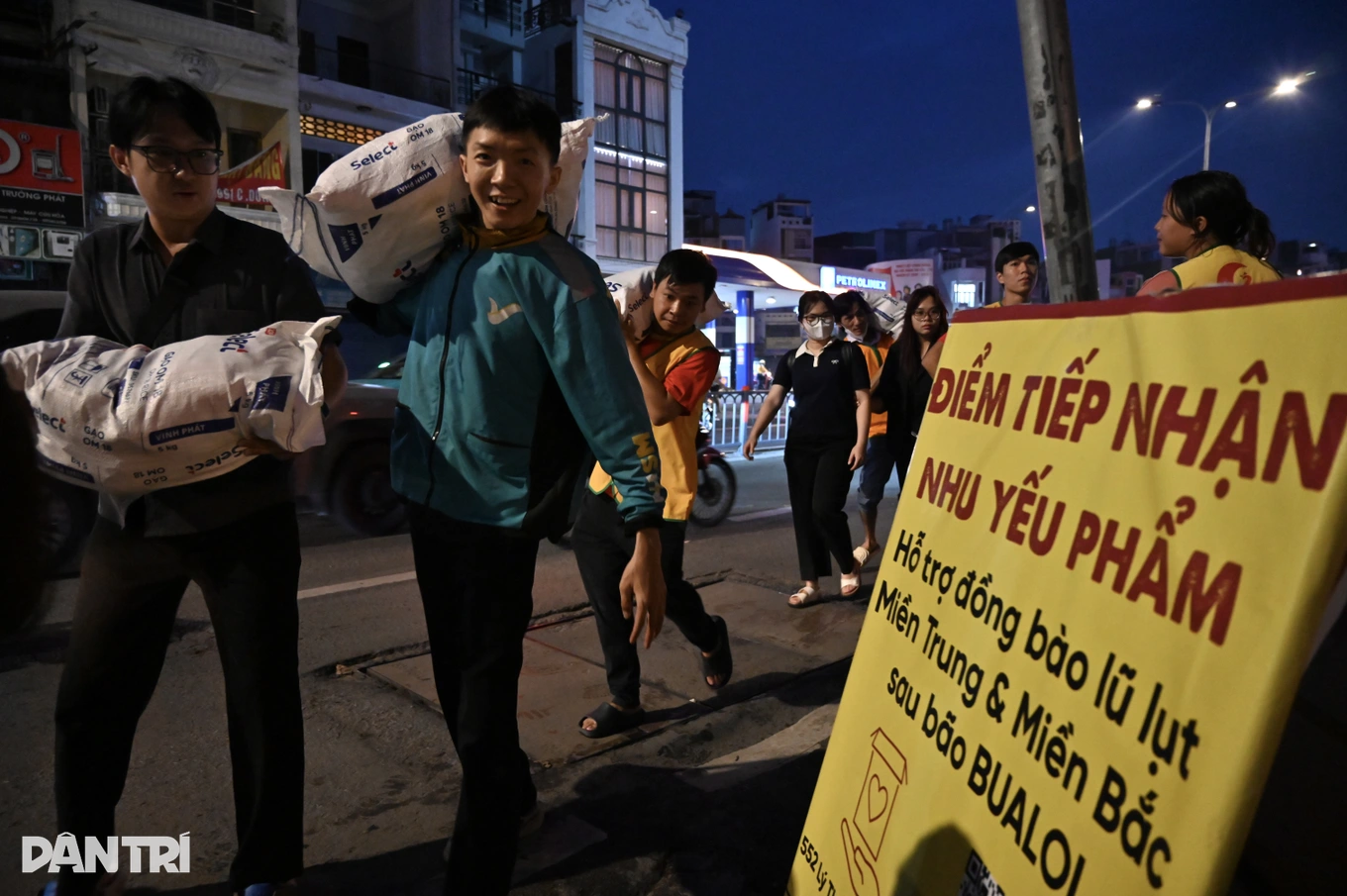 Tối 9/10, tại điểm tập kết hàng cứu trợ số 552 Lý Thường Kiệt (phường Tân Sơn Nhất, TPHCM), không khí làm việc rộn ràng, ấm áp tình người. Hàng trăm tình nguyện viên cùng người dân tất bật khuân vác, sắp xếp từng thùng hàng gửi ra miền Bắc – nơi đồng bào đang oằn mình chống chọi với thiên tai.