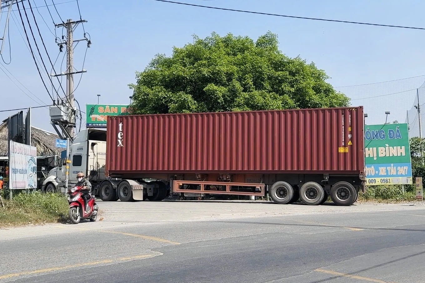 Chiếc xe đầu kéo container dừng cách điểm va chạm khoảng 1km (Ảnh: CTV).