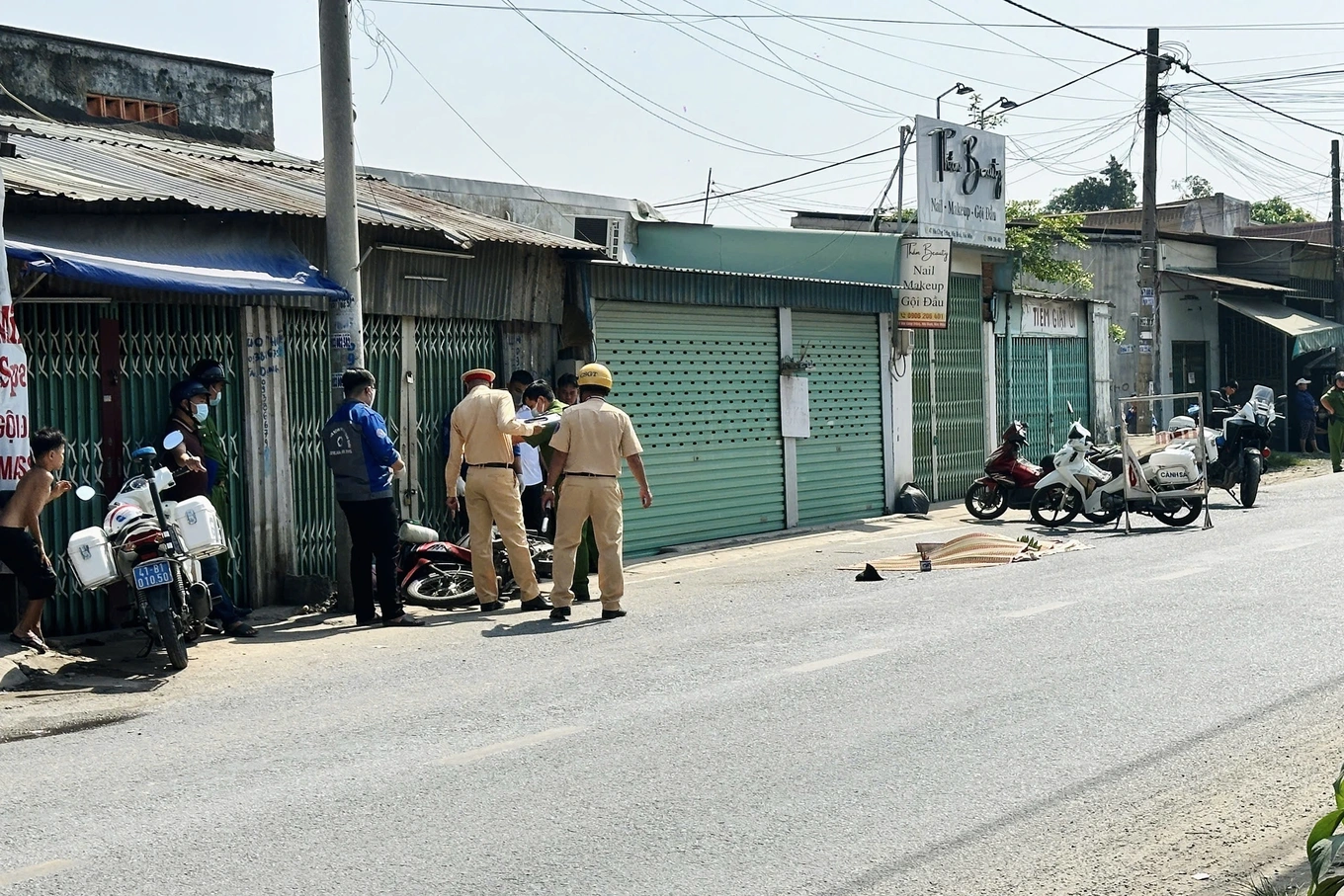 Nhận tin báo, công an đến khám nghiệm hiện trường, điều tra nguyên nhân tai nạn.