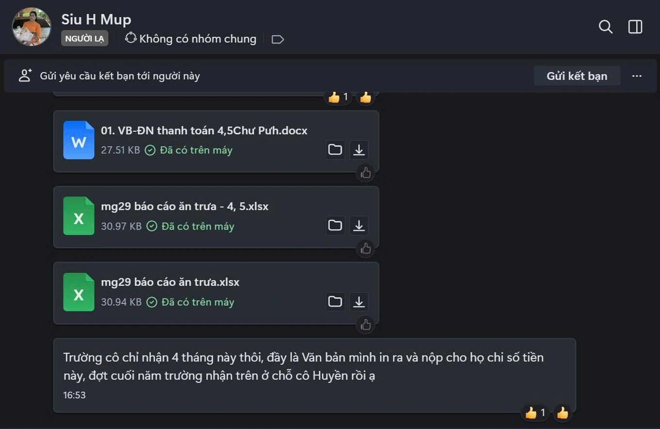 Chị Hương tiếp tục liên hệ với các anh chị nuôi khác trong nhóm. Một người cho chị biết rằng họ cũng được cấp một mã bỏ rơi với nội dung giống như chị. Người này cũng đóng tiền ăn cho cả năm học cũ và năm học mới. Trong khi ở trường Mẫu giáo 2/9, không có học sinh nào được nuôi ăn trước tháng 2/2025.