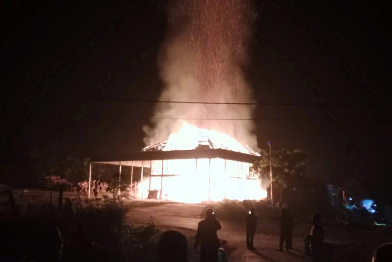 Ngôi nhà anh D. cháy ngùn ngụt trong đêm 12/1 (Ảnh: Nguyễn Phê).