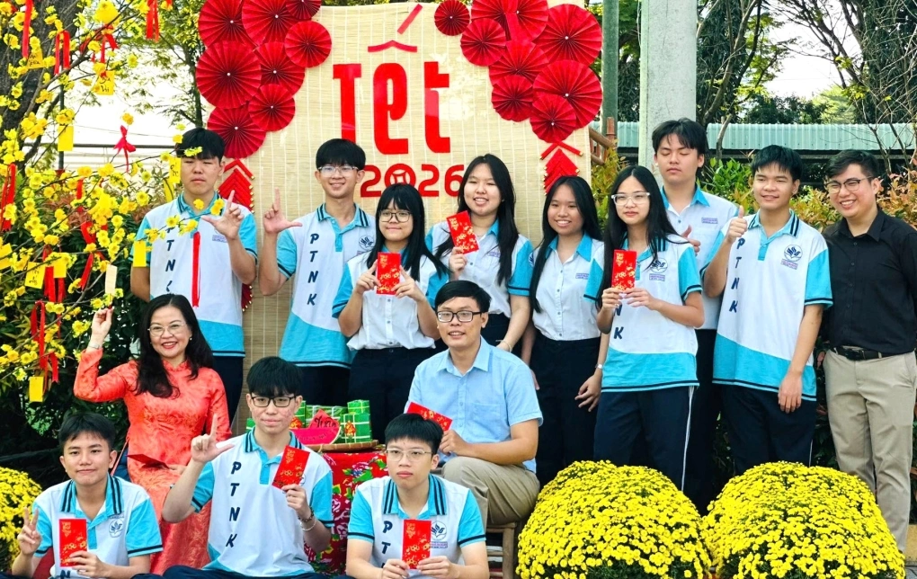 Thầy trò trường Phổ thông Năng khiếu, Đại học Quốc gia TP HCM, hôm 20/1. Ảnh: Năng khiếu library