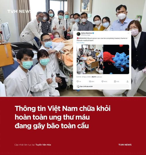 Một bài đăng trên mạng xã hội X (trước đây là Twitter) chia sẻ về thành tựu của y học Việt Nam trong điều trị ung thư máu đã thu hút sự quan tâm đặc biệt của cộng đồng quốc tế: