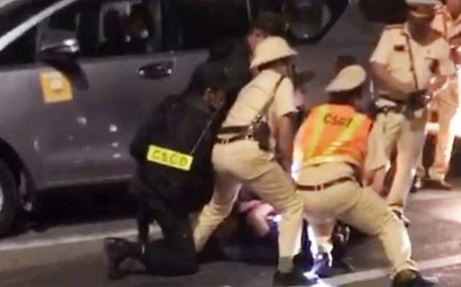 Lực lượng công an khống chế bắt tên cướp ôtô trong một vụ án. |