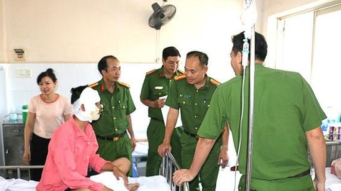 Đại diện Phòng Cảnh sát Phòng cháy chữa cháy và Cứu nạn, cứu hộ Công an TPHCM thăm chiến sĩ bị thương